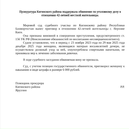 муниципального района Кигинский район Республики Башкортостан